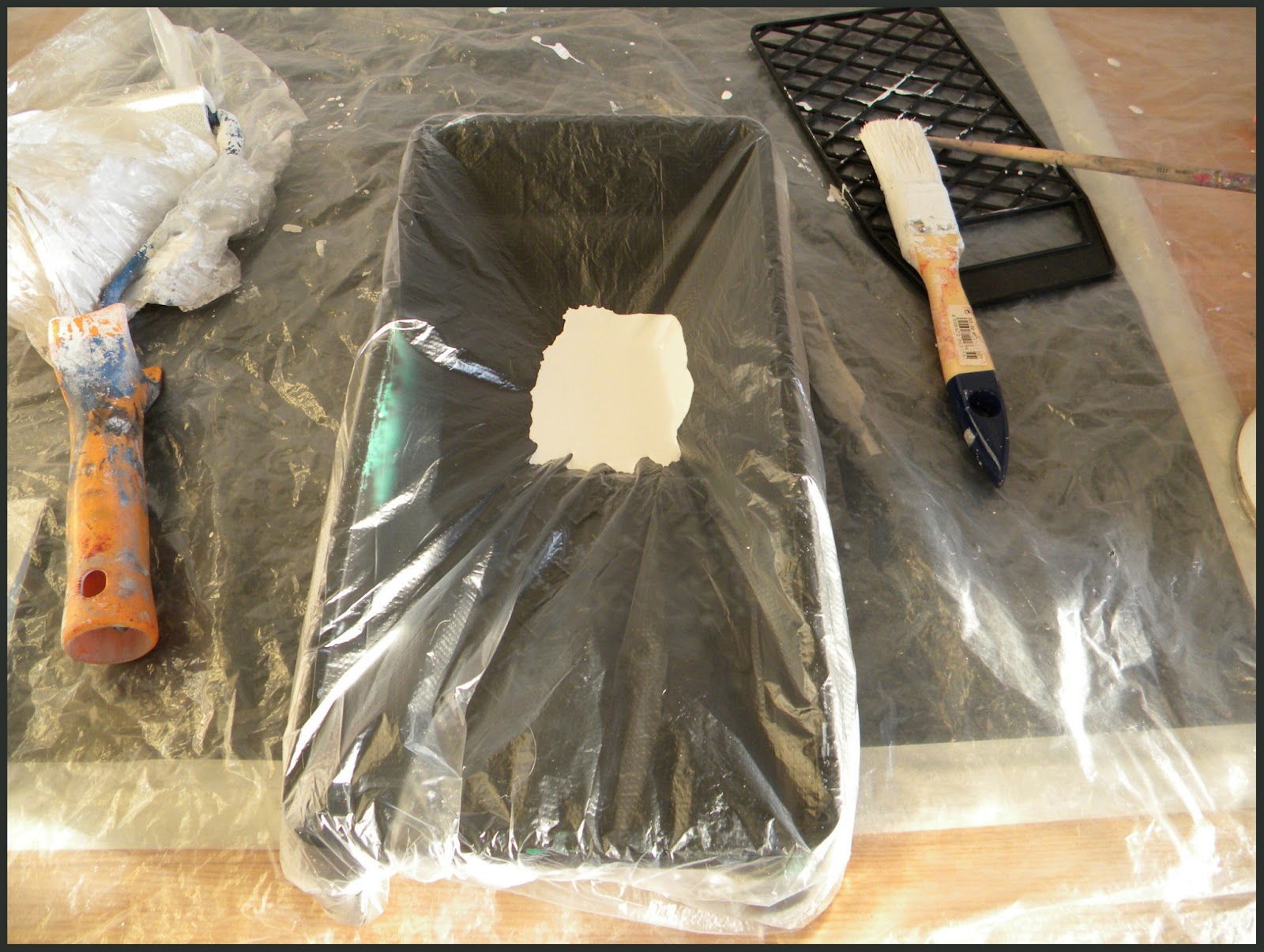 На кювету "оденьте" бесцветный пакет. Это защитит ее от ненужной траты времени на отмывание. Налейте немного краски, промакните валик, прокатайте его в кювете.